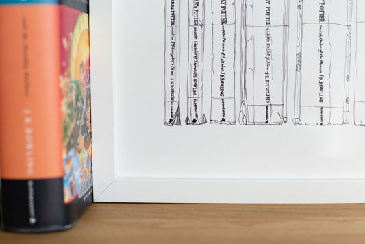 Magical childhood Novels Book Spine Ink Drawing Art print