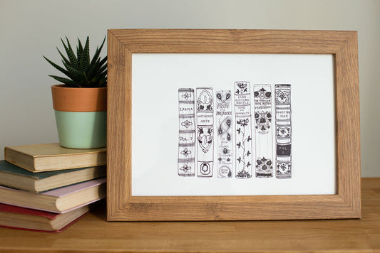 Classic Victorian Novels Book Spine Ink Drawing Art print