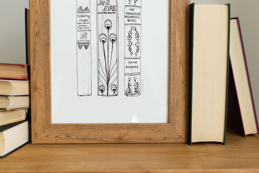 Bronte sisters Novels Book Spine Ink Drawing Art print