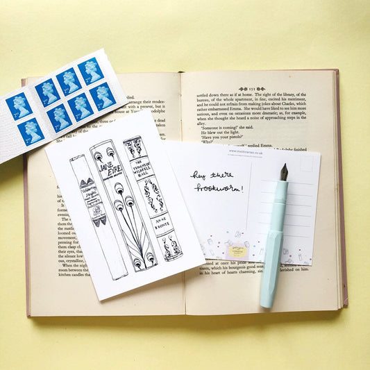 Bronte sister greetings card featuring Wuthering Heights, Jane Eyre and The Tenant of Wildfell Hall