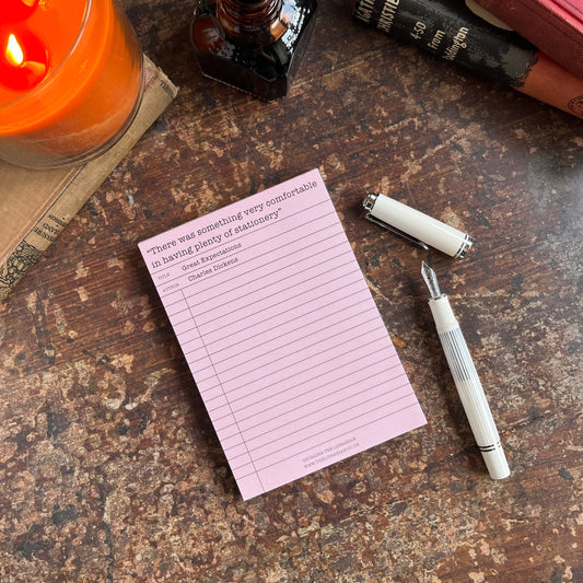 Charles Dickens "There was something very comfortable in having plenty of stationery" Literary Quote A6 Notepad